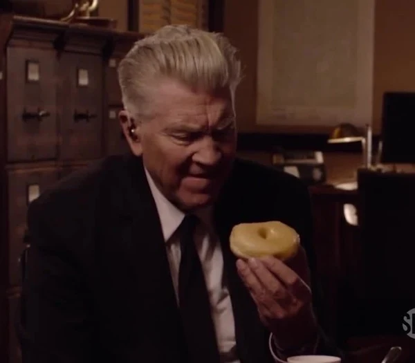 There's no berry pies served, no coffee until the fourth episode where a cup--maybe--plays a crucial role. There's donuts--boxed and labeled (apparently from a wellknown franchise) not spread out in sumptuous display--and at one point a beautifully pointless pun involving the little crullers. Laura Palmer (Sheryl Lee) does appear but she's older now ("I'm dead yet I live") having somehow aged in the confines of the Black Lodge. Most of the characters have visibly aged, reflecting the physical condition of much of the audience ardently watching.